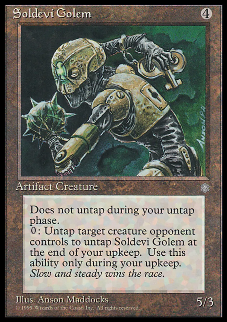 | Oracle Text | Soldevi Golem doesn't untap during your untap step. At the beginning of your upkeep, you may untap target tapped creature an opponent controls. If you do, untap Soldevi Golem. | ||