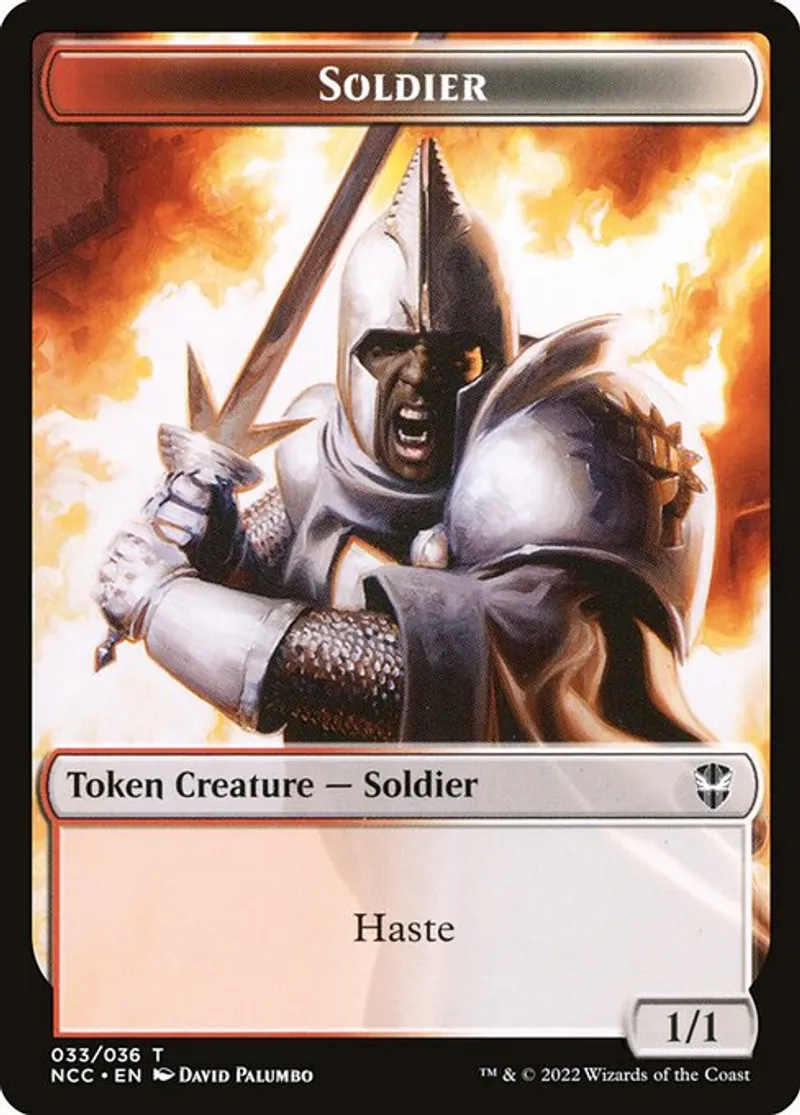 Magic: the Gathering (mtg) Token Token Creature — Soldier Soldier from Streets of New Capenna Commander Tokens (TNCC) last updated 2026-02-21 16:06:02