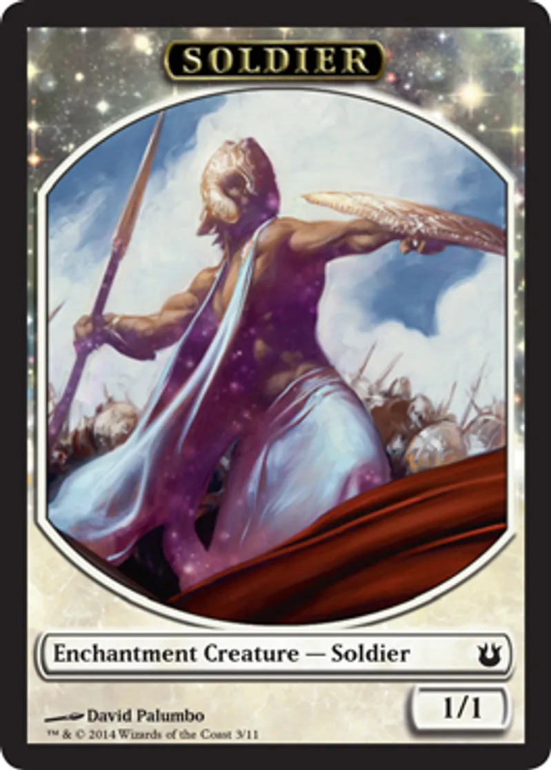 Magic: the Gathering (mtg) Token Enchatment Creature - Soldier Soldier Token from Born of the Gods Tokens (TBNG) last updated 2026-02-21 16:51:32