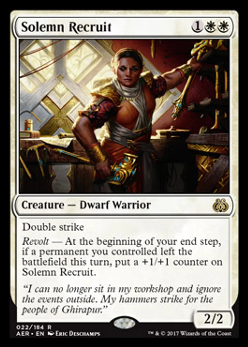 Solemn Recruit is a Rare in the set Aether Revolt.