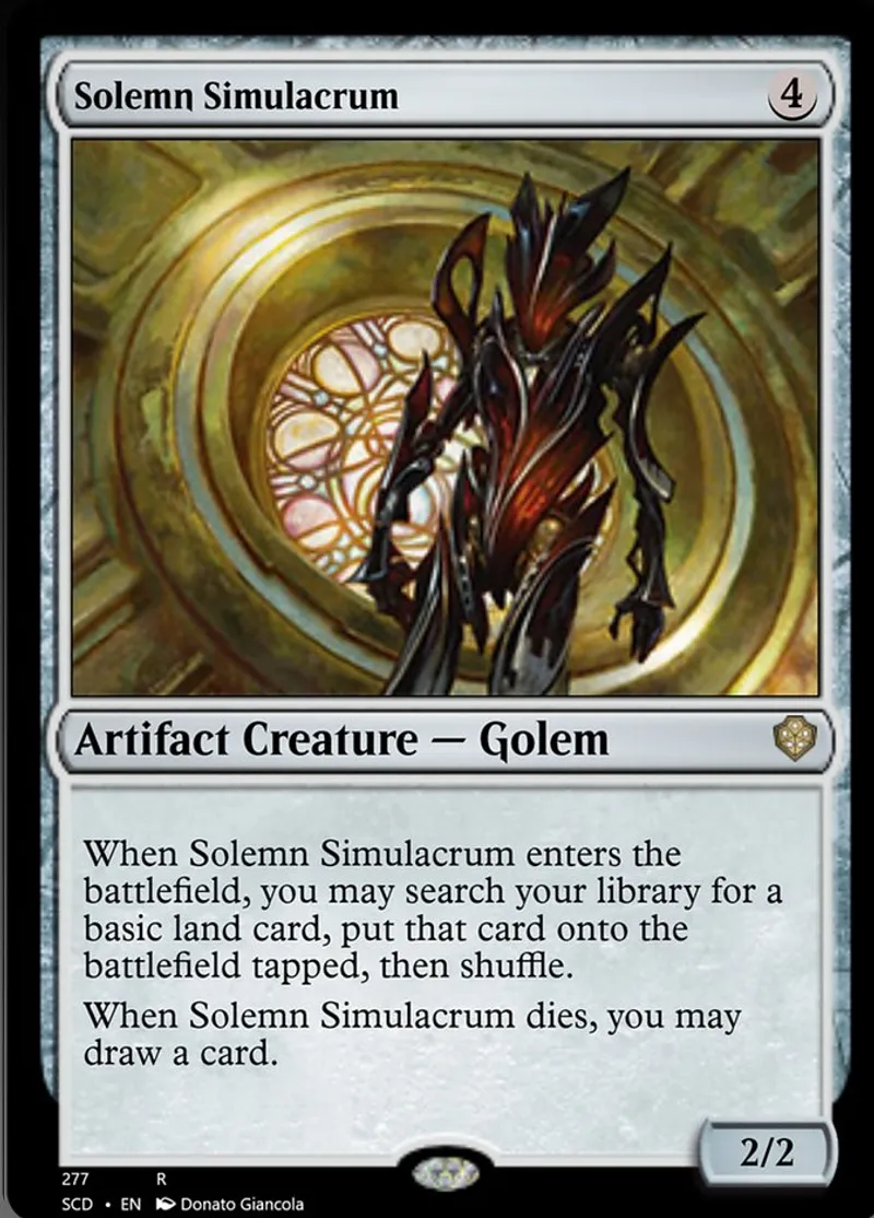 Magic: the Gathering (mtg) rare Artifact Creature — Golem Solemn Simulacrum from Starter Commander Decks (scd) last updated 2026-02-25 15:41:34