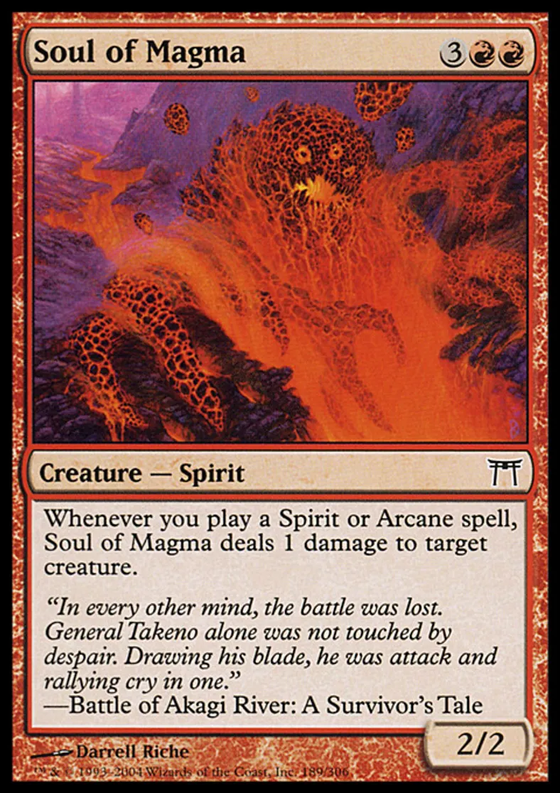 | Oracle Text | Whenever you cast a Spirit or Arcane spell, Soul of Magma deals 1 damage to target creature. | ||