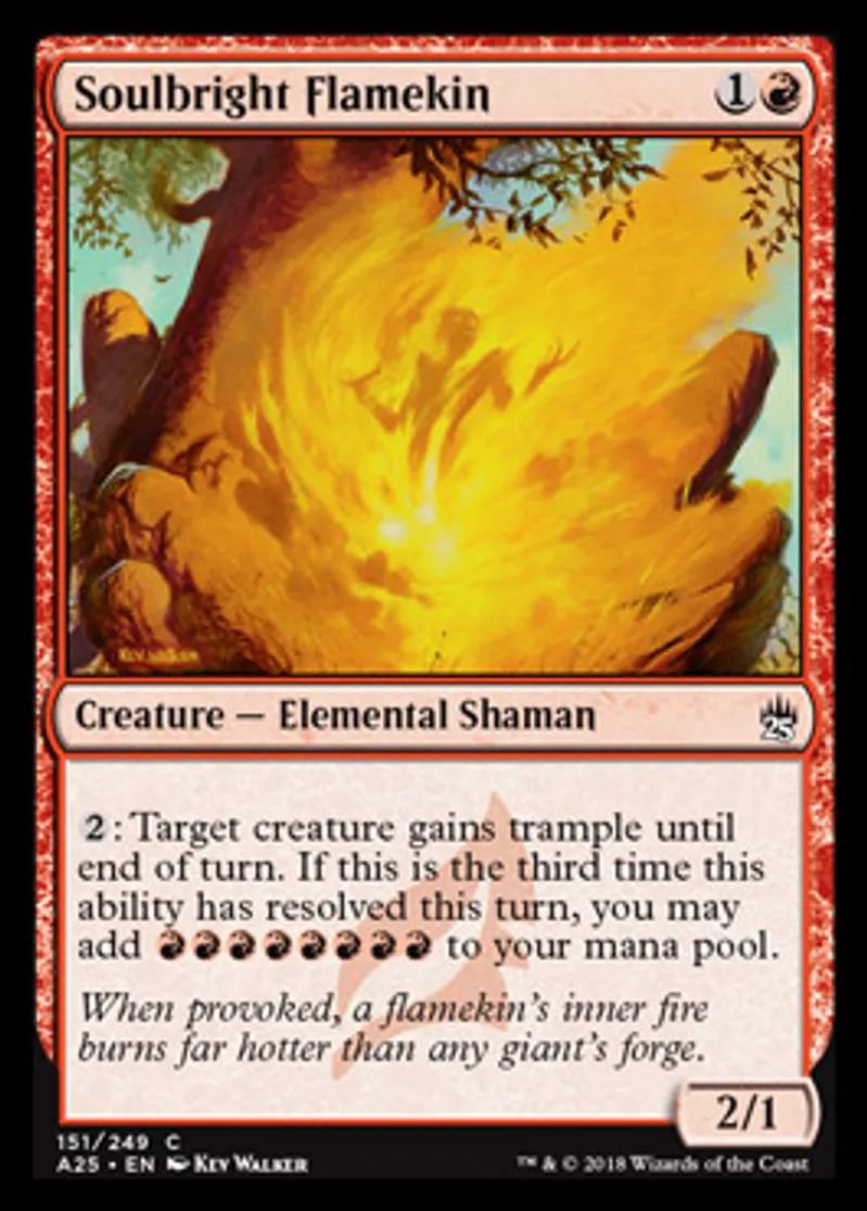 Magic: the Gathering (mtg) Common Creature - Elemental Shaman Soulbright Flamekin from Masters 25 (A25) last updated 2026-02-21 16:50:36