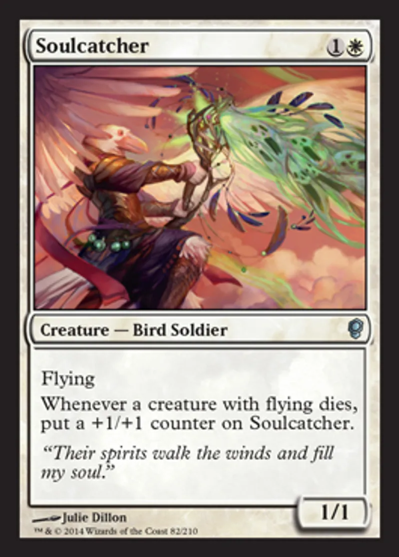 | Oracle Text | Flying Whenever a creature with flying dies, put a +1/+1 counter on Soulcatcher. | ||