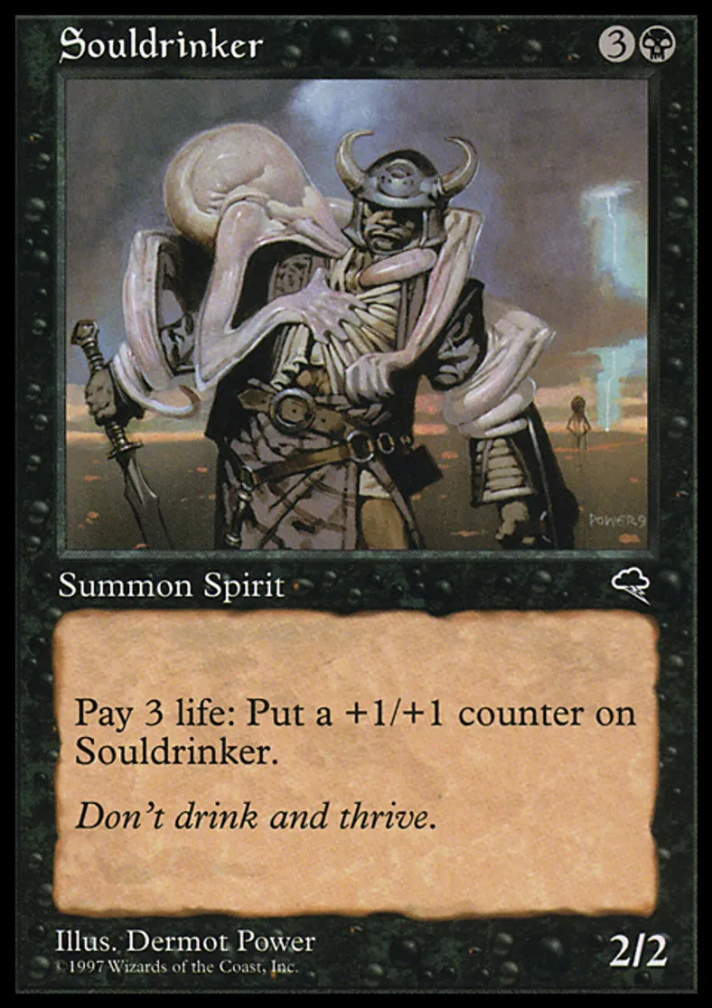 | Oracle Text | Pay 3 life: Put a +1/+1 counter on Souldrinker. | ||