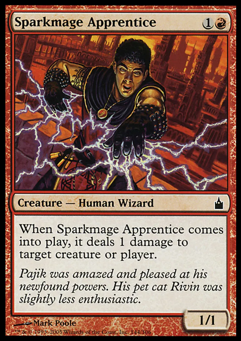 | Oracle Text | When Sparkmage Apprentice enters the battlefield, it deals 1 damage to target creature or player. | ||