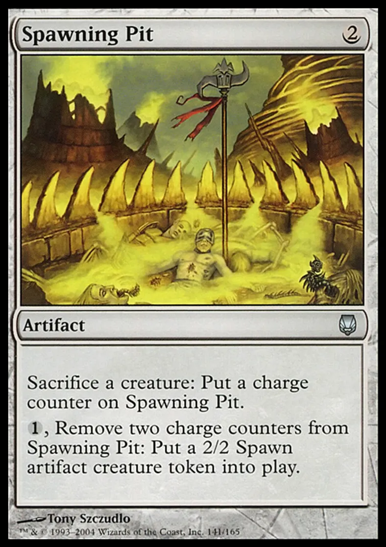 | Oracle Text | Sacrifice a creature: Put a charge counter on Spawning Pit. {{1}}, Remove two charge counters from Spawning Pit: Put a 2/2 colorless Spawn artifact creature token onto the battlefield. | ||