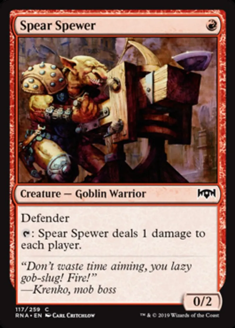 Magic: the Gathering (mtg) Common Creature — Goblin Warrior Spear Spewer from Ravnica Allegiance (RNA) last updated 2026-02-24 14:39:32