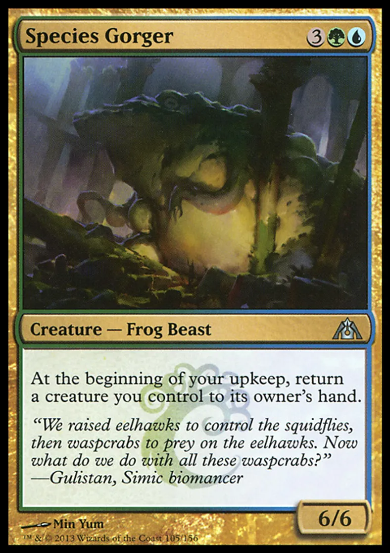 Magic: the Gathering (mtg) Uncommon Creature - Frog Beast Species Gorger from Dragon's Maze (DGM) last updated 2026-02-24 15:58:32