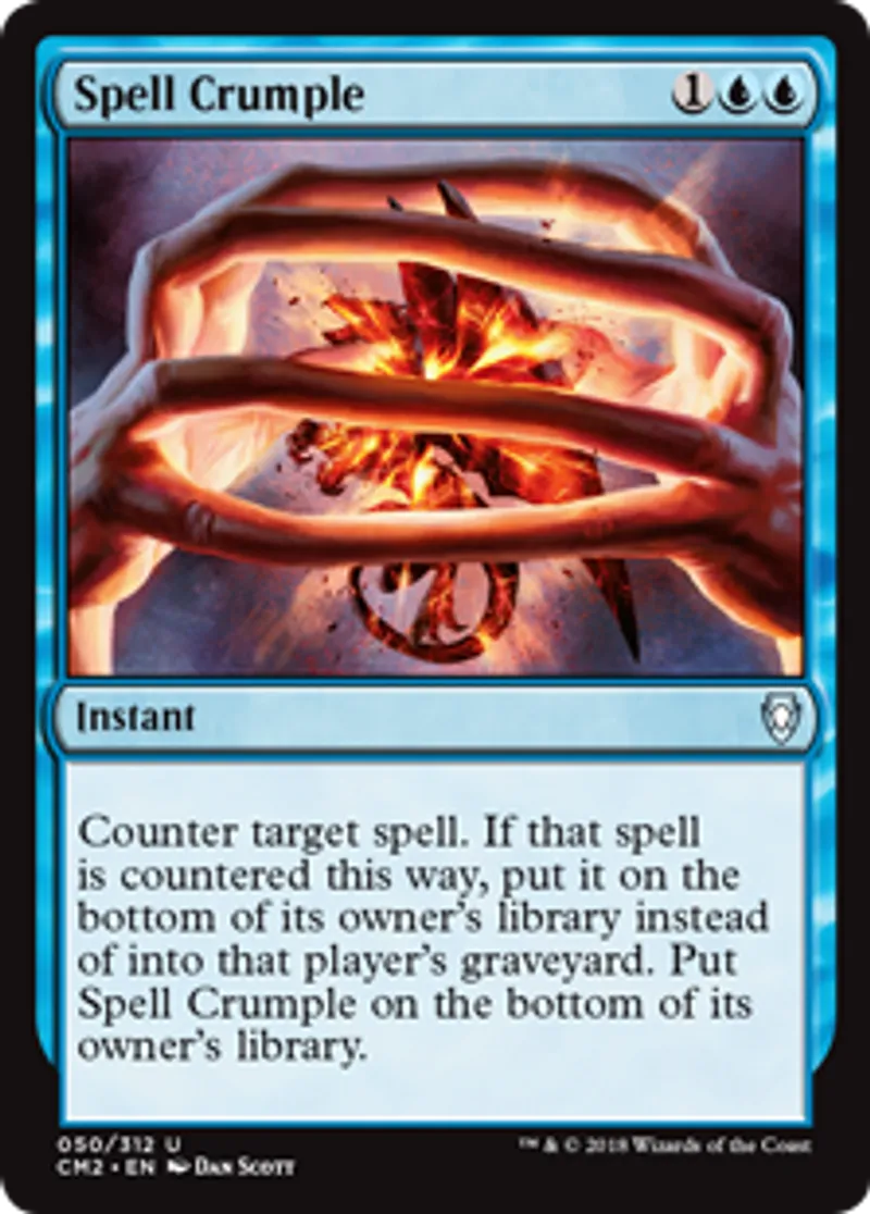 | Oracle Text | Counter target spell. If that spell is countered this way, put it on the bottom of its owner's library instead of into that player's graveyard. Put Spell Crumple on the bottom of its owner's library. | ||