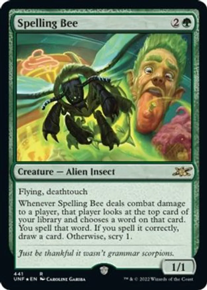 Magic: the Gathering (mtg) Rare Creature — Alien Insect Spelling Bee from Unfinity (UNF) last updated 2026-02-21 16:13:01