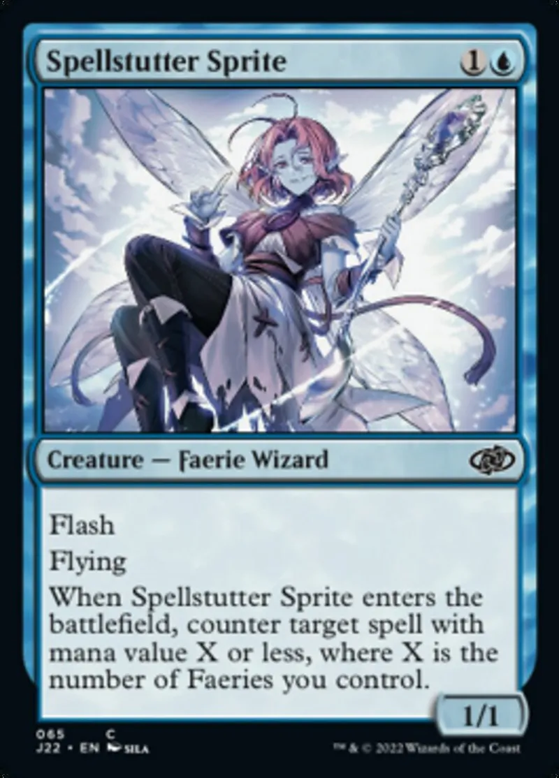 When Spellstutter Sprite enters the battlefield, counter target spell with mana value X or less, where X is the number of Faeries you control. | ||