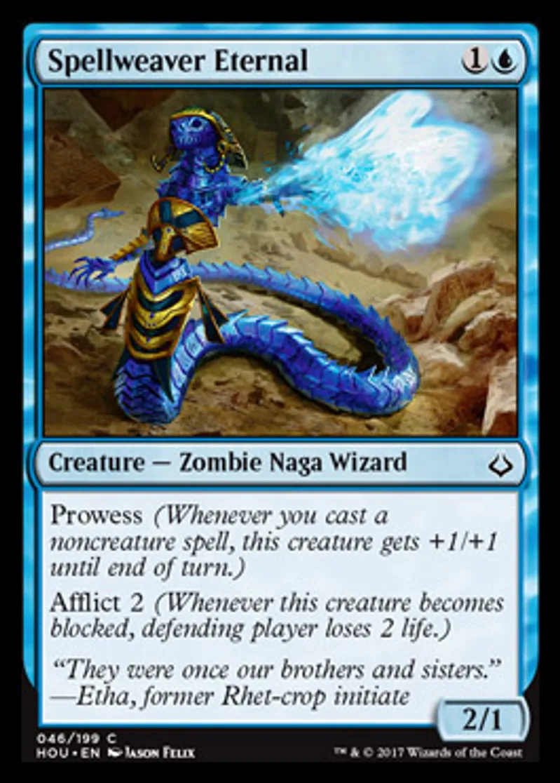 Magic: the Gathering (mtg) Common Creature - Zombie Naga Wizard Spellweaver Eternal from Hour of Devastation (HOU) last updated 2026-02-21 16:47:01