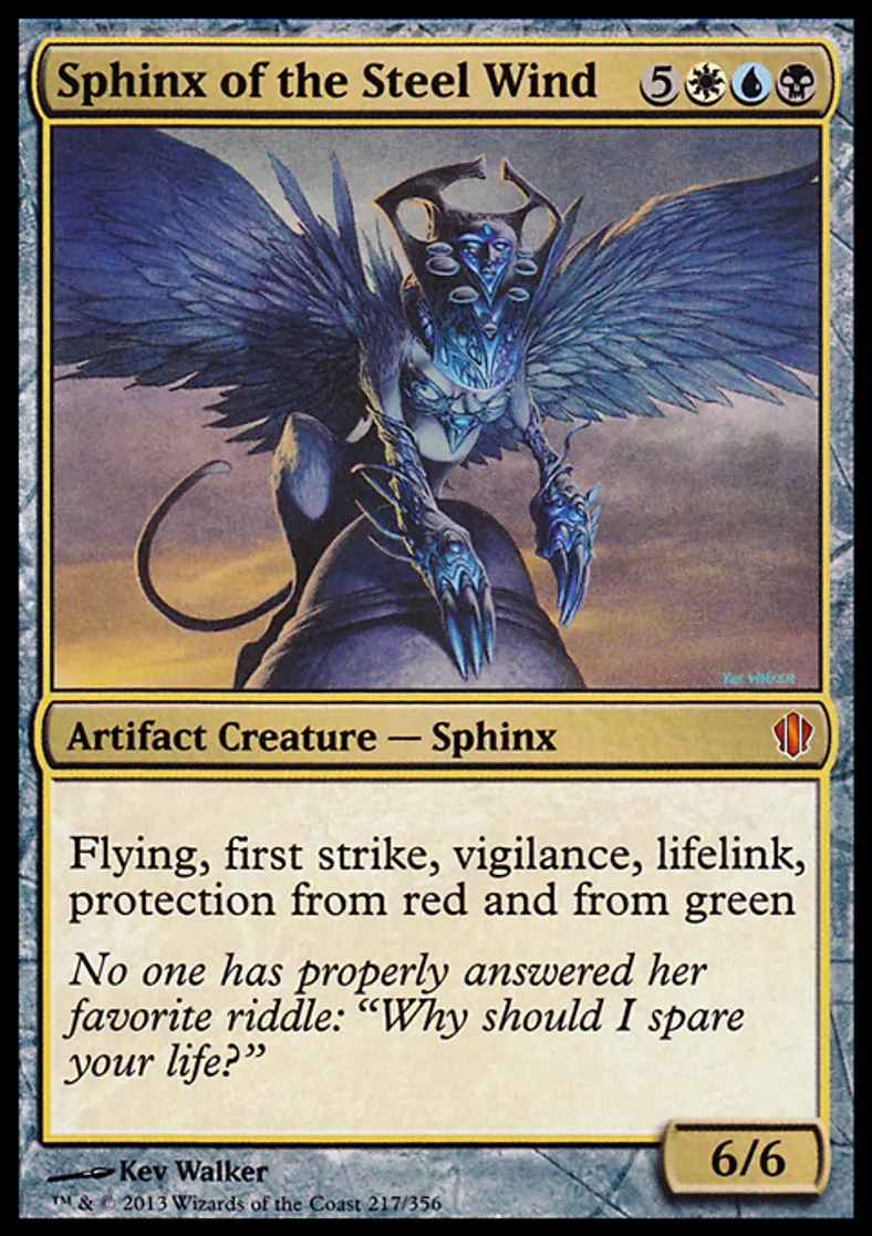 Sphinx of the Steel Wind is a Mythic Rare in the set Commander 2013 Edition.