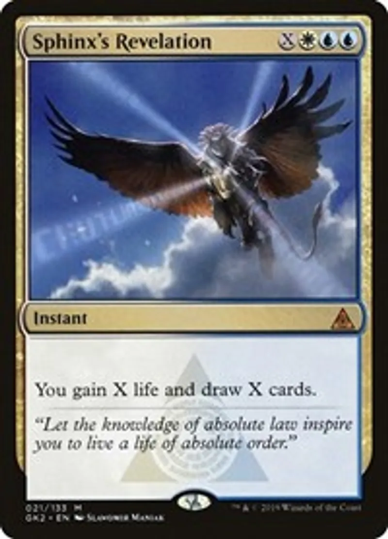 Sphinx's Revelation is a Mythic Rare in the set Ravnica Allegiance: Guild Kits.