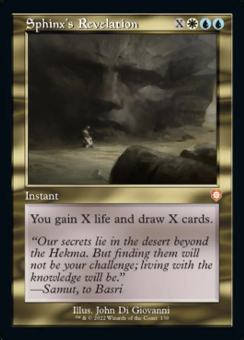 Sphinx's Revelation is a mythic in the set The Brothers' War Commander.