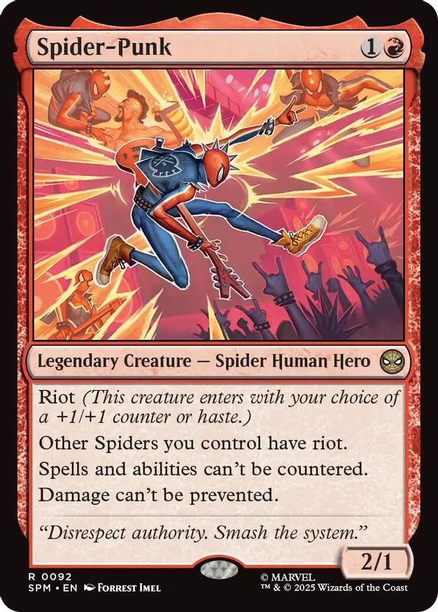 other spiders you control have riot. spells and abilities can't be countered. damage can't be prevented. | ||