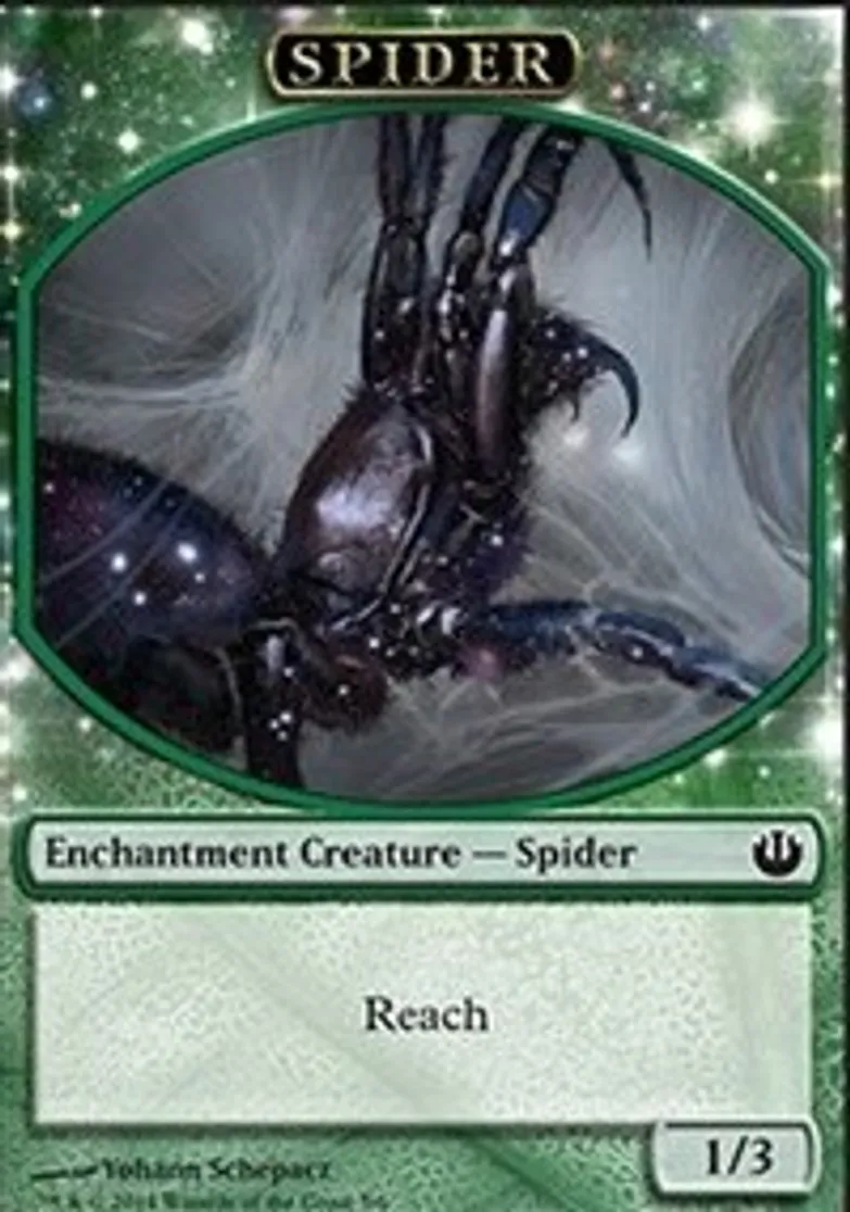 Magic: the Gathering (mtg) Token Enchantment Creature - Spider Spider Token from Journey into Nyx Tokens (TJOU) last updated 2026-01-31 15:54:32