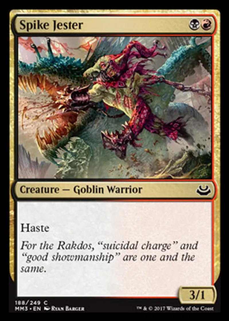 Magic: the Gathering (mtg) Common Creature - Goblin Warrior Spike Jester from Modern Masters 2017 (MM3) last updated 2026-02-21 16:45:32