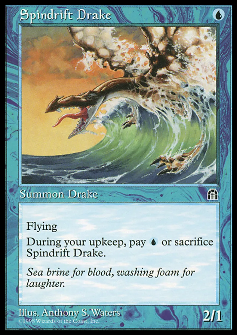 | Oracle Text | Flying At the beginning of your upkeep, sacrifice Spindrift Drake unless you pay {{u}}. | ||