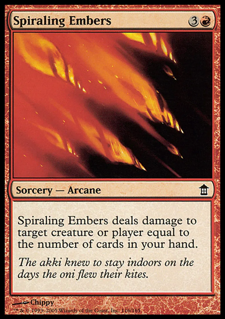 Magic: the Gathering (mtg) Common Sorcery - Arcane Spiraling Embers from Saviors of Kamigawa (SOK) last updated 2026-02-21 17:41:02