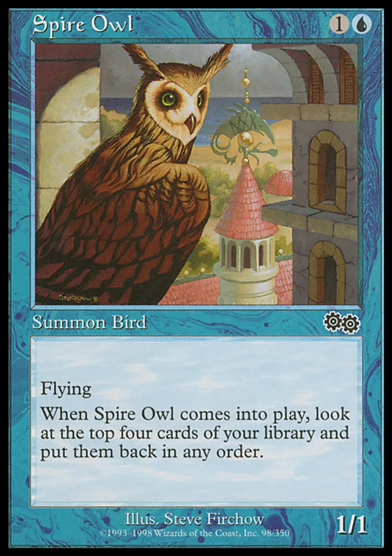 | Oracle Text | Flying When Spire Owl enters the battlefield, look at the top four cards of your library, then put them back in any order. | ||