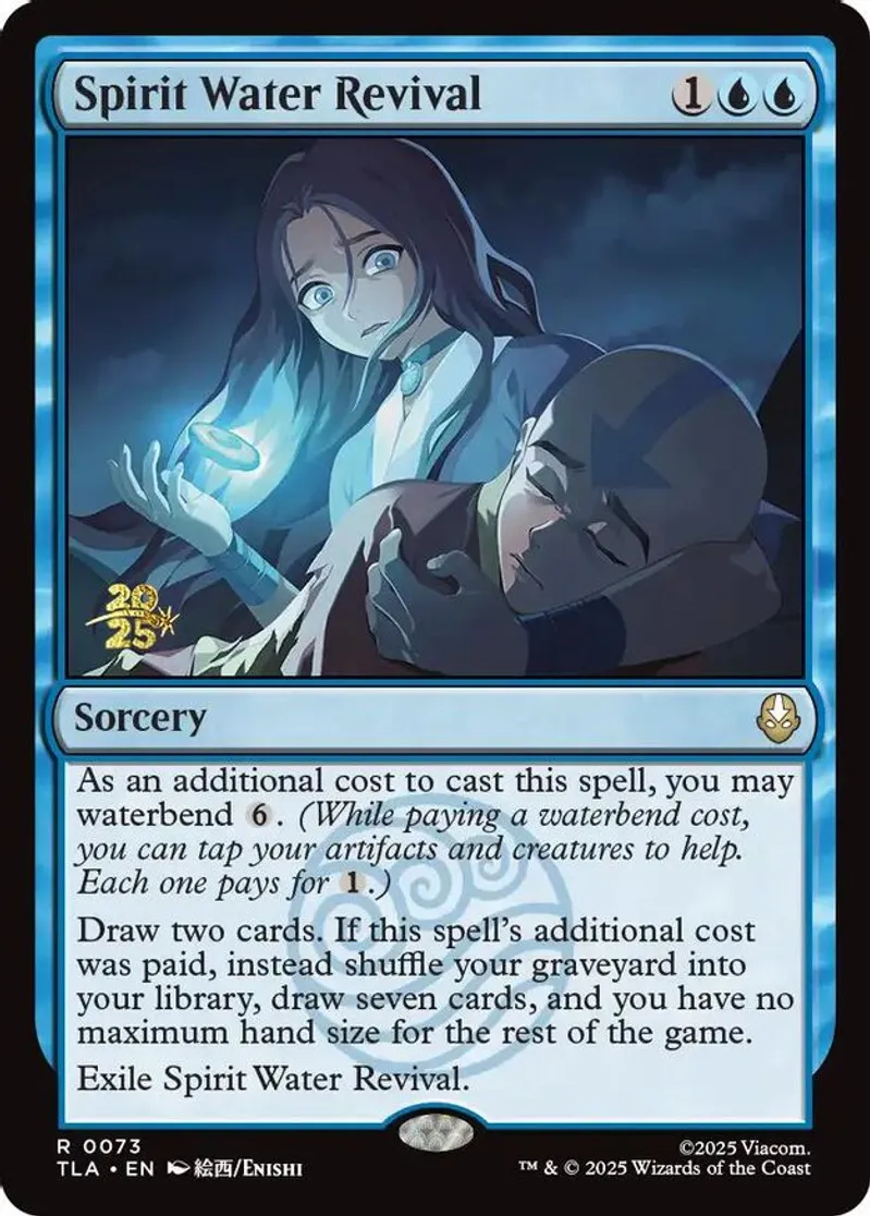 draw two cards. if this spell's additional cost was paid, instead shuffle your graveyard into your library, draw seven cards, and you have no maximum hand size for the rest of the game. exile spirit water revival. | ||