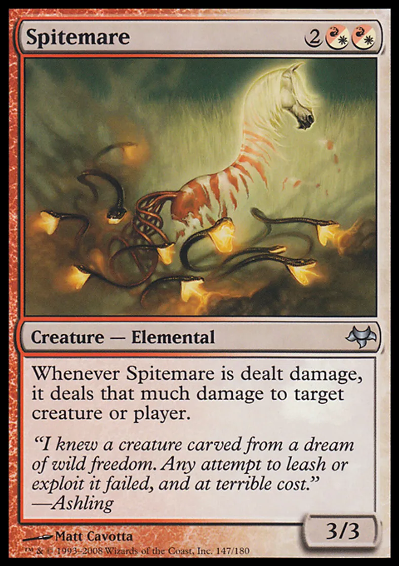 | Oracle Text | Whenever Spitemare is dealt damage, it deals that much damage to target creature or player. | ||