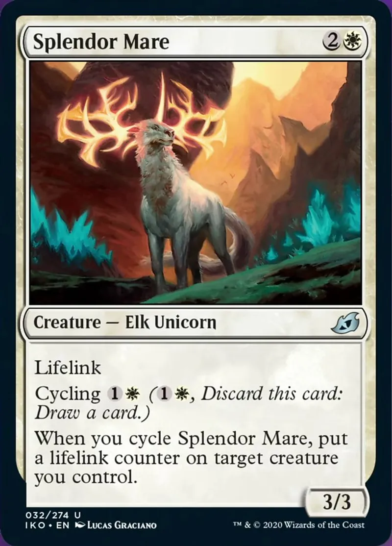 When you cycle Splendor Mare, put a lifelink counter on target creature you control. | ||