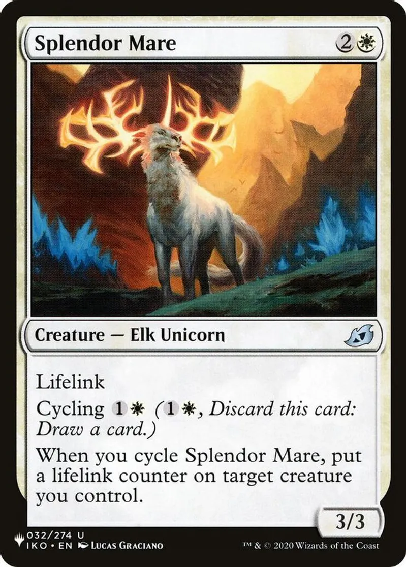 Magic: the Gathering (mtg) Uncommon creature — elk unicorn Splendor Mare from The List Reprints (PLIST) last updated 2026-02-21 15:29:05