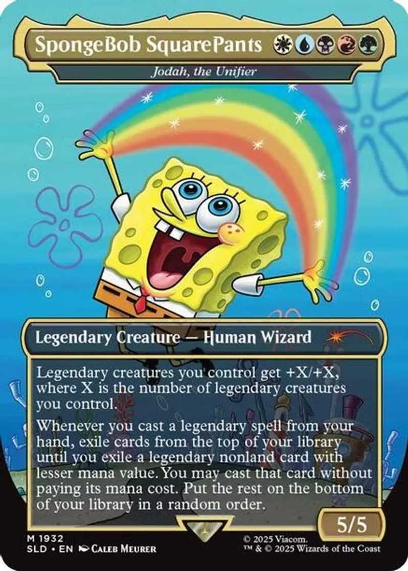 Magic: the Gathering (mtg) Mythic Rare legendary creature — human wizard SpongeBob SquarePants - Jodah, the Unifier from Secret Lair Drop Series (SLD) last updated 2026-02-25 14:22:06