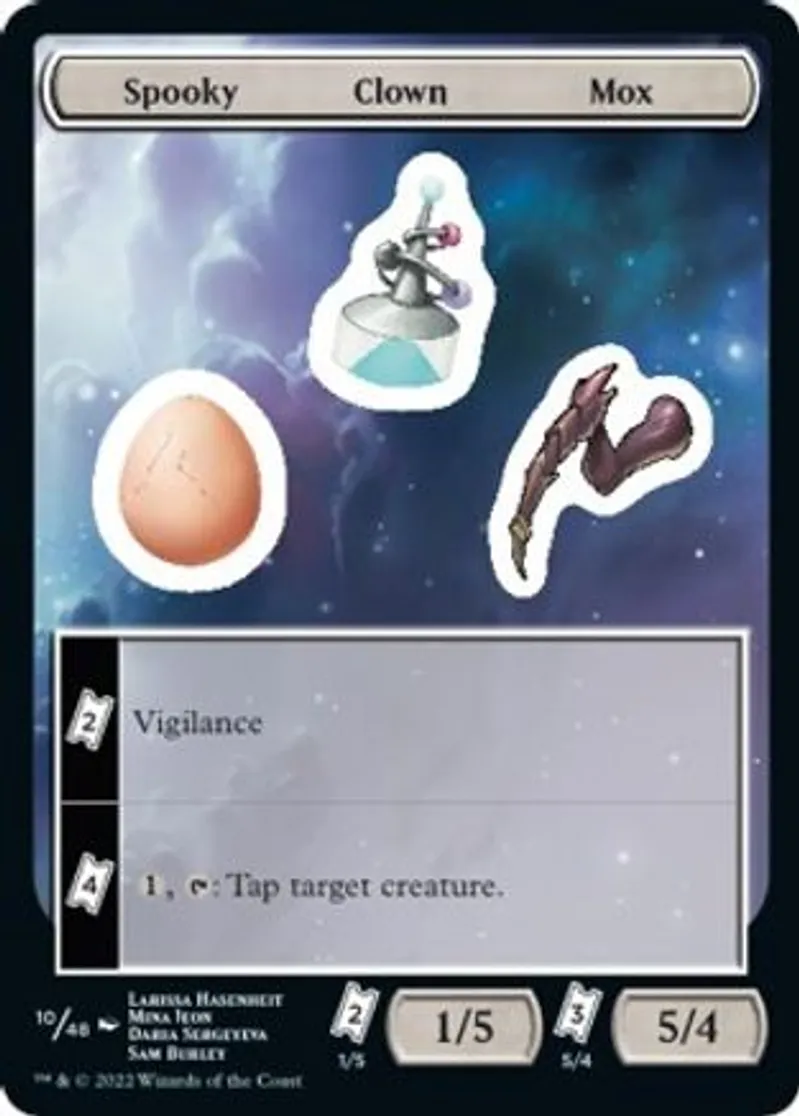 Spooky Clown Mox is a Token in the set Unfinity Tokens.