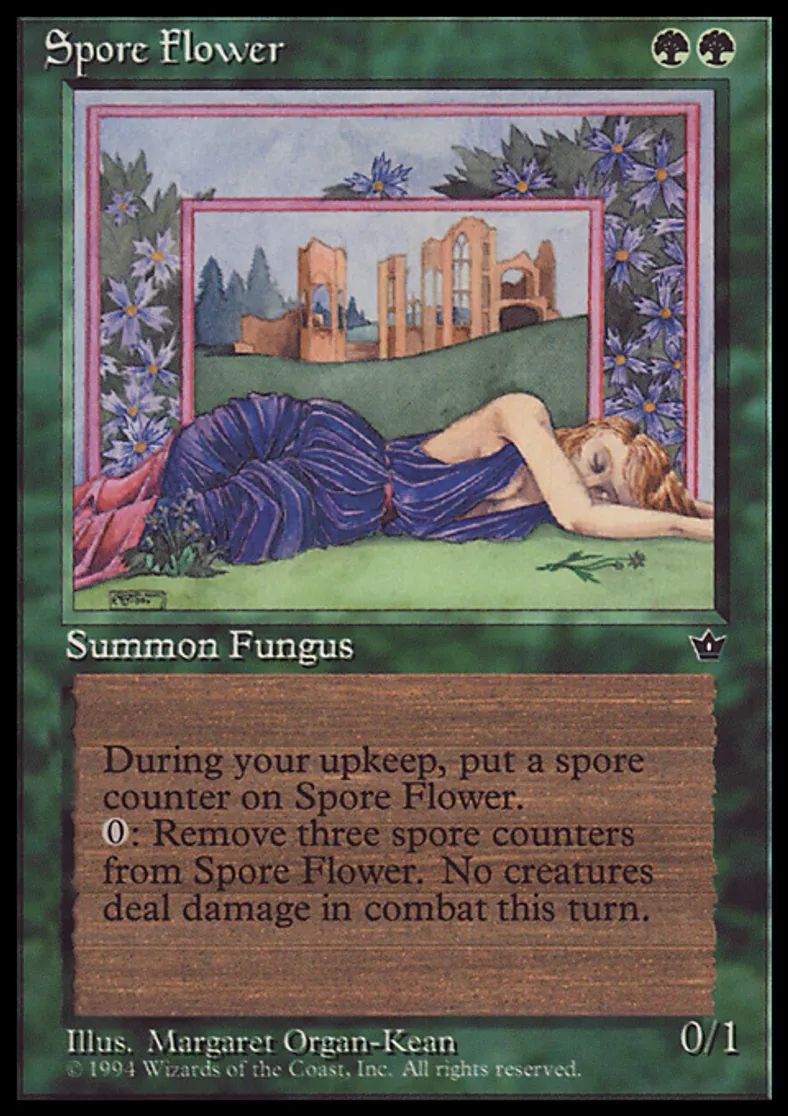 | Oracle Text | At the beginning of your upkeep, put a spore counter on Spore Flower. Remove three spore counters from Spore Flower: Prevent all combat damage that would be dealt this turn. | ||