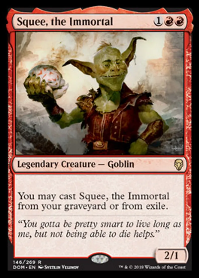 Magic: the Gathering (mtg) Rare Legendary Creature - Goblin Squee, the Immortal from Dominaria (DOM) last updated 2026-02-21 16:51:03