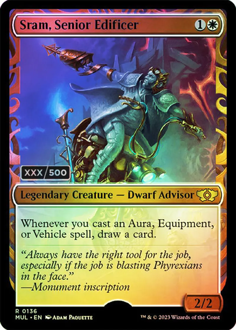 Magic: the Gathering (mtg) Rare Legendary Creature — Dwarf Advisor Sram, Senior Edificer from Multiverse Legends Serialized (SMUL) last updated 2026-02-24 14:27:02