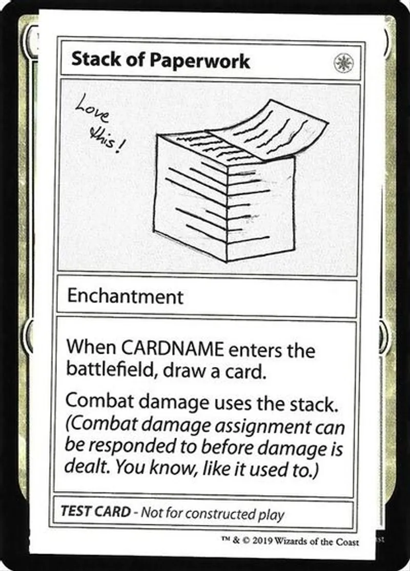 | Oracle Text | When Stack of Paperwork enters the battlefield, draw a card.