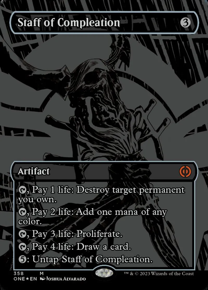 Magic: the Gathering (mtg) Mythic Rare Artifact Staff of Compleation from Phyrexia: All Will Be One (one) last updated 2026-02-24 15:41:32