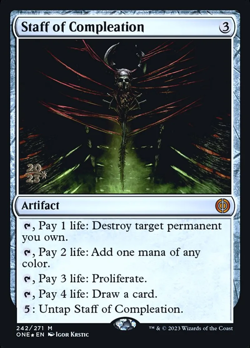 Magic: the Gathering (mtg) Mythic Rare Artifact Staff of Compleation from Prerelease Cards (pPRE) last updated 2026-02-25 14:29:02