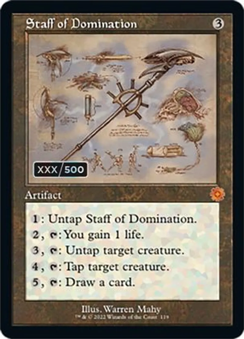 Magic: the Gathering (mtg) Mythic Rare Artifact Staff of Domination from The Brothers' War Serialized (SBRO) last updated 2026-02-07 14:26:02