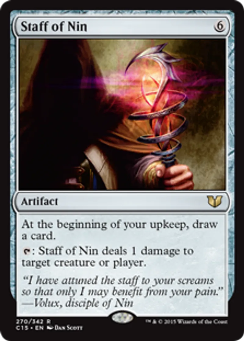 Magic: the Gathering (mtg) Rare Artifact Staff of Nin from Commander 2015 (C15) last updated 2026-02-24 16:02:06