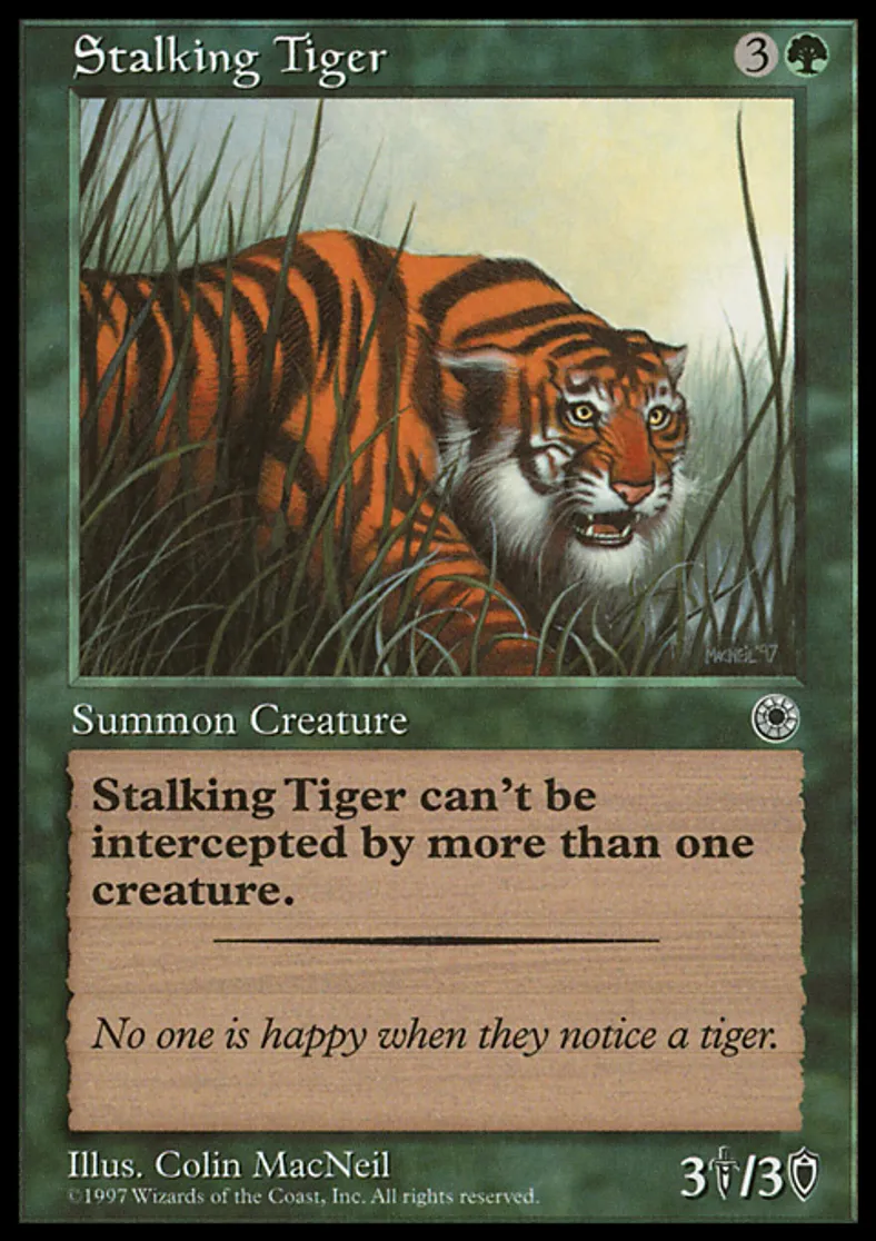 | Oracle Text | Stalking Tiger can't be blocked by more than one creature. | ||