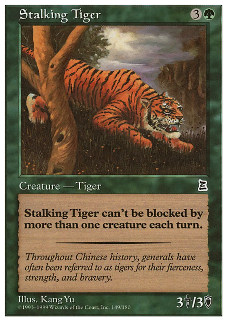 | Oracle Text | Stalking Tiger can't be blocked by more than one creature. | ||