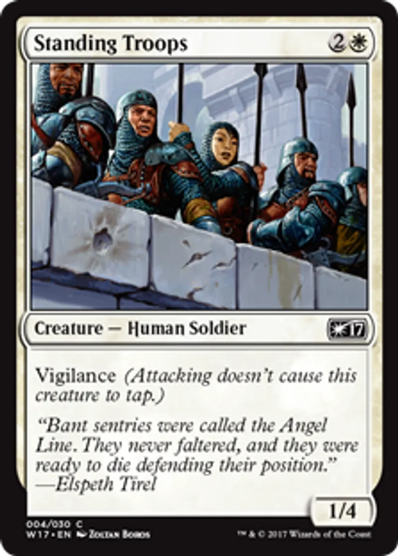 Magic: the Gathering (mtg) Common Creature - Human Soldier Standing Troops from Welcome Deck 2017 (W17) last updated 2026-02-21 16:48:04