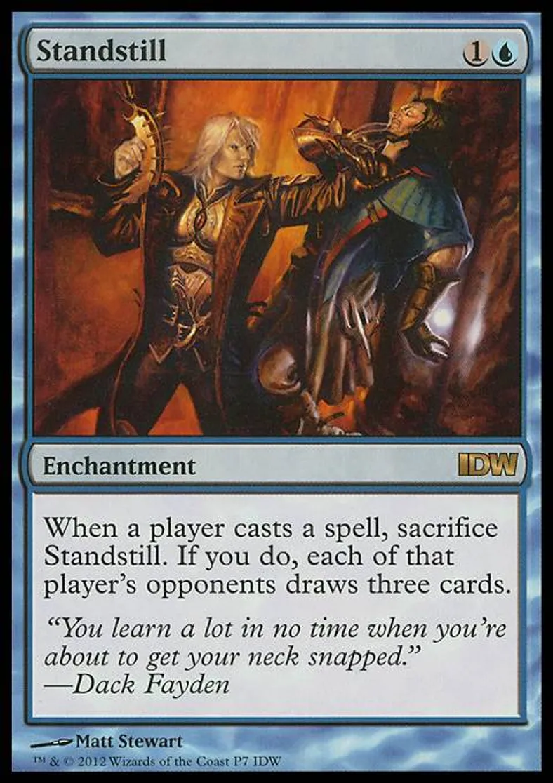 | Oracle Text | When a player casts a spell, sacrifice Standstill. If you do, each of that player's opponents draws three cards. | ||