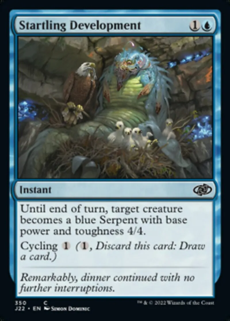 Magic: the Gathering (mtg) common Instant Startling Development from Jumpstart 2022 (j22) last updated 2026-02-21 16:17:02