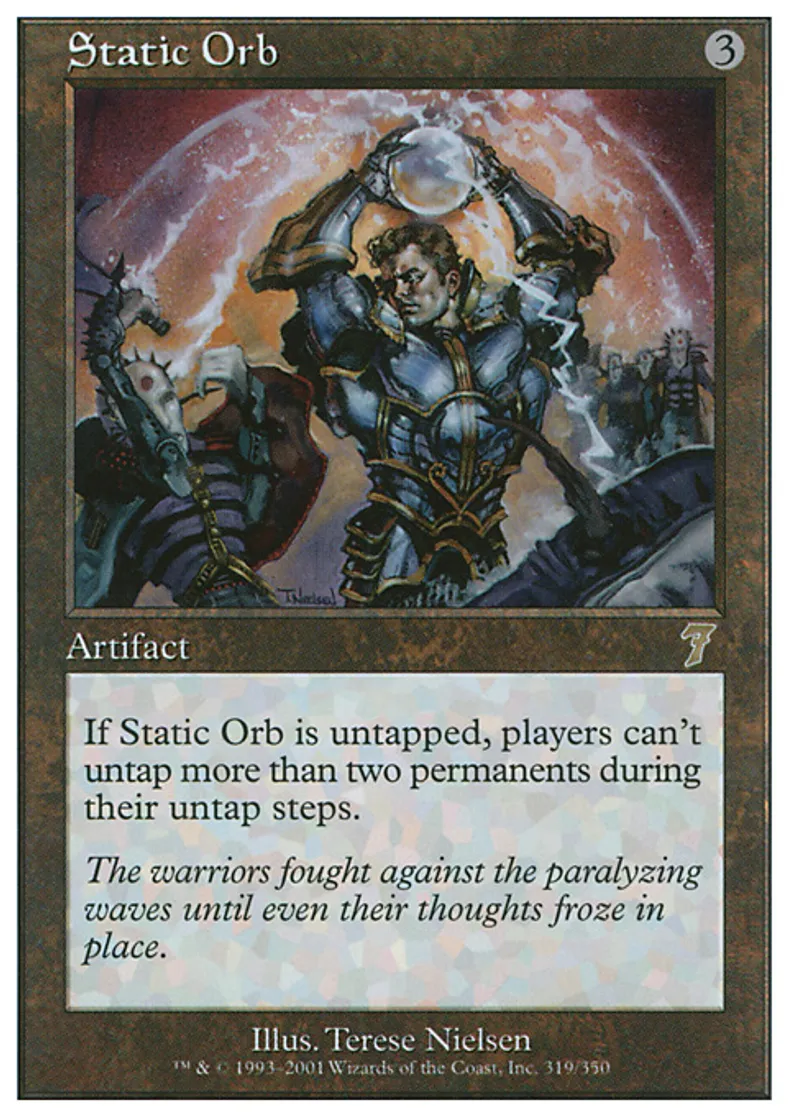| Oracle Text | As long as Static Orb is untapped, players can't untap more than two permanents during their untap steps. | ||
