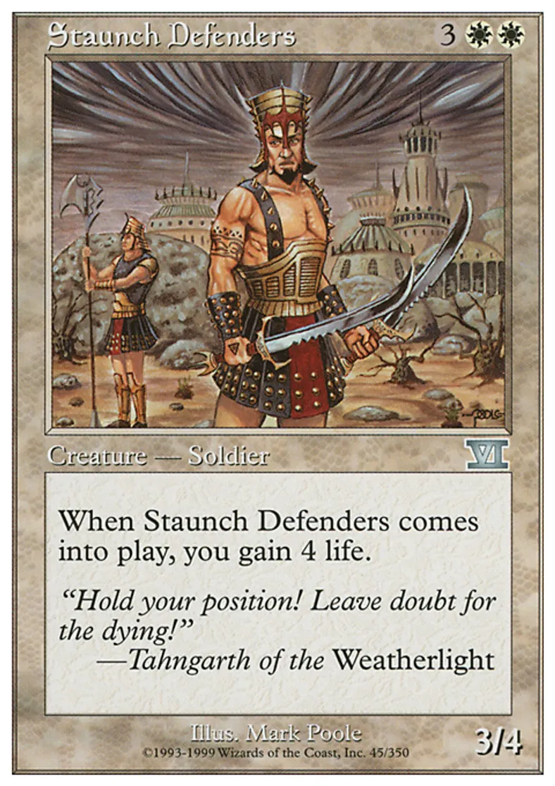 Magic: the Gathering (mtg) Uncommon Creature - Human Soldier Staunch Defenders from Classic Sixth Edition (6ED) last updated 2026-02-21 17:33:06
