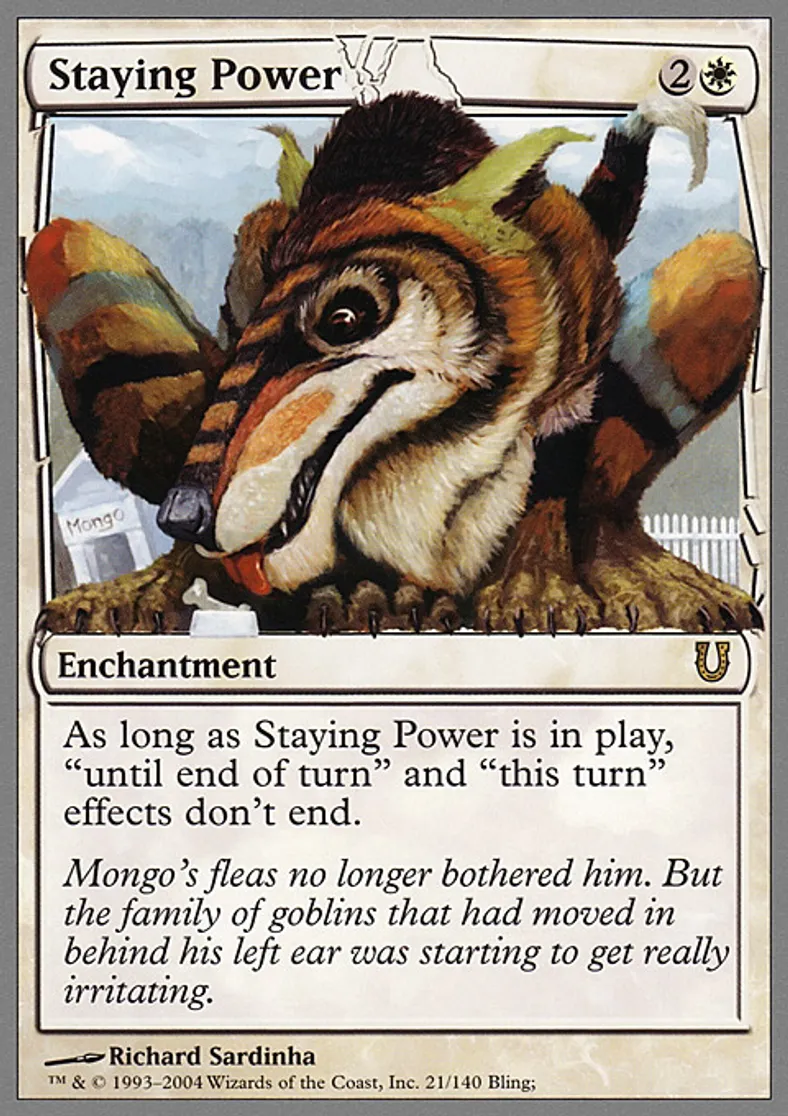 | Oracle Text | As long as Staying Power is in play, "until end of turn" and "this turn" effects don't end. | ||