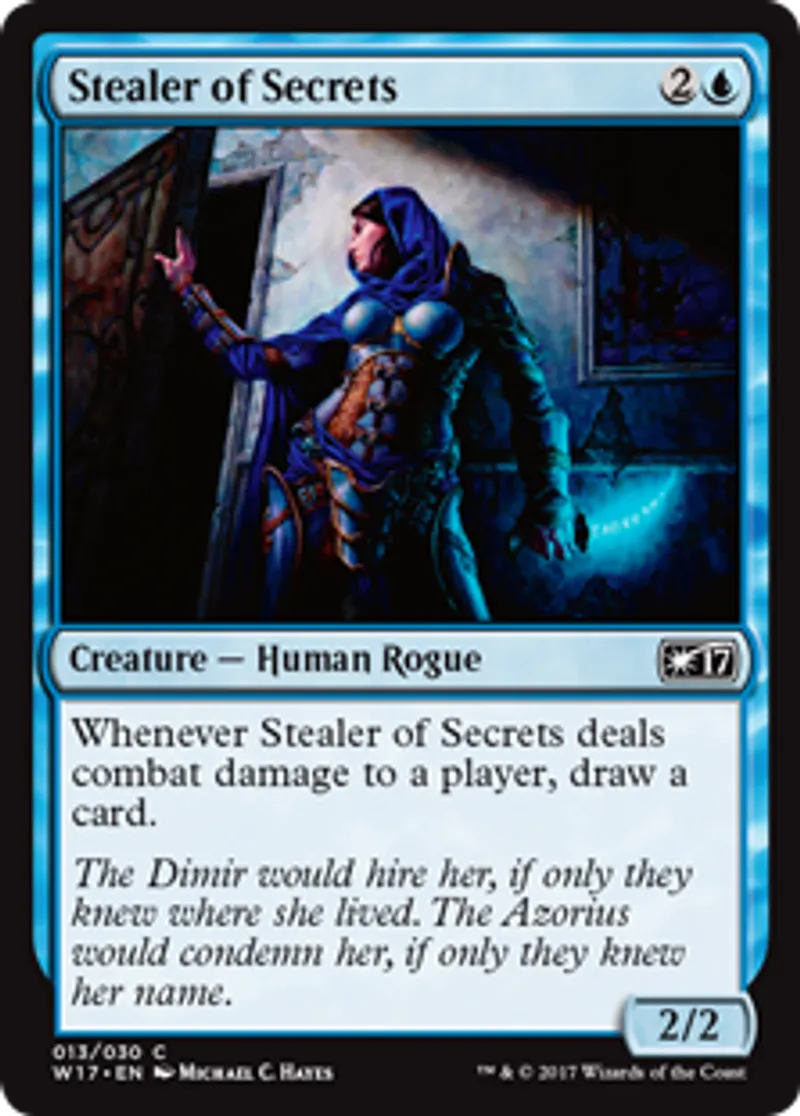 Magic: the Gathering (mtg) Common Creature - Human Rogue Stealer of Secrets from Welcome Deck 2017 (W17) last updated 2026-02-21 16:48:04