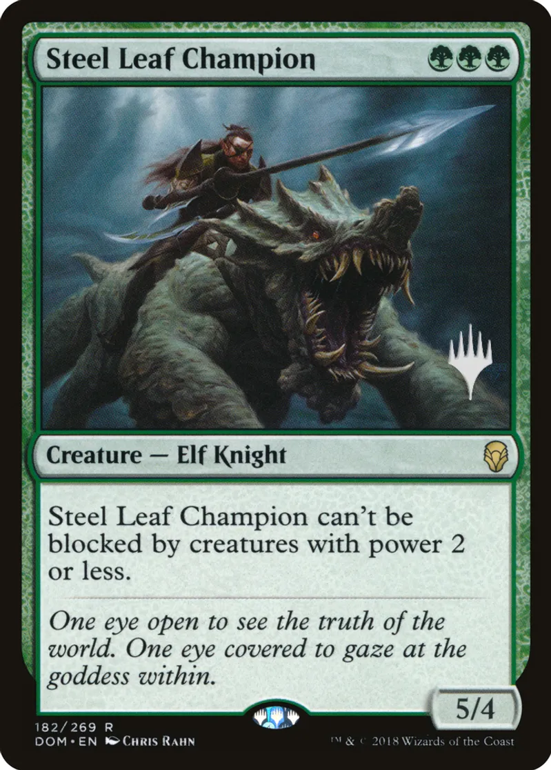 | Oracle Text | Steel Leaf Champion can\'t be blocked by creatures with power 2 or less. | ||